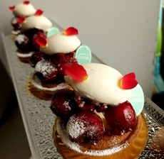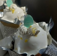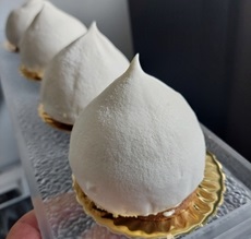 イタリア産チョコレートを使用したムースを薄いチョコレートで巻き上げました。 ヘーゼルナッツペーストの香りとフイヤンティーヌの食感がアクセント。
